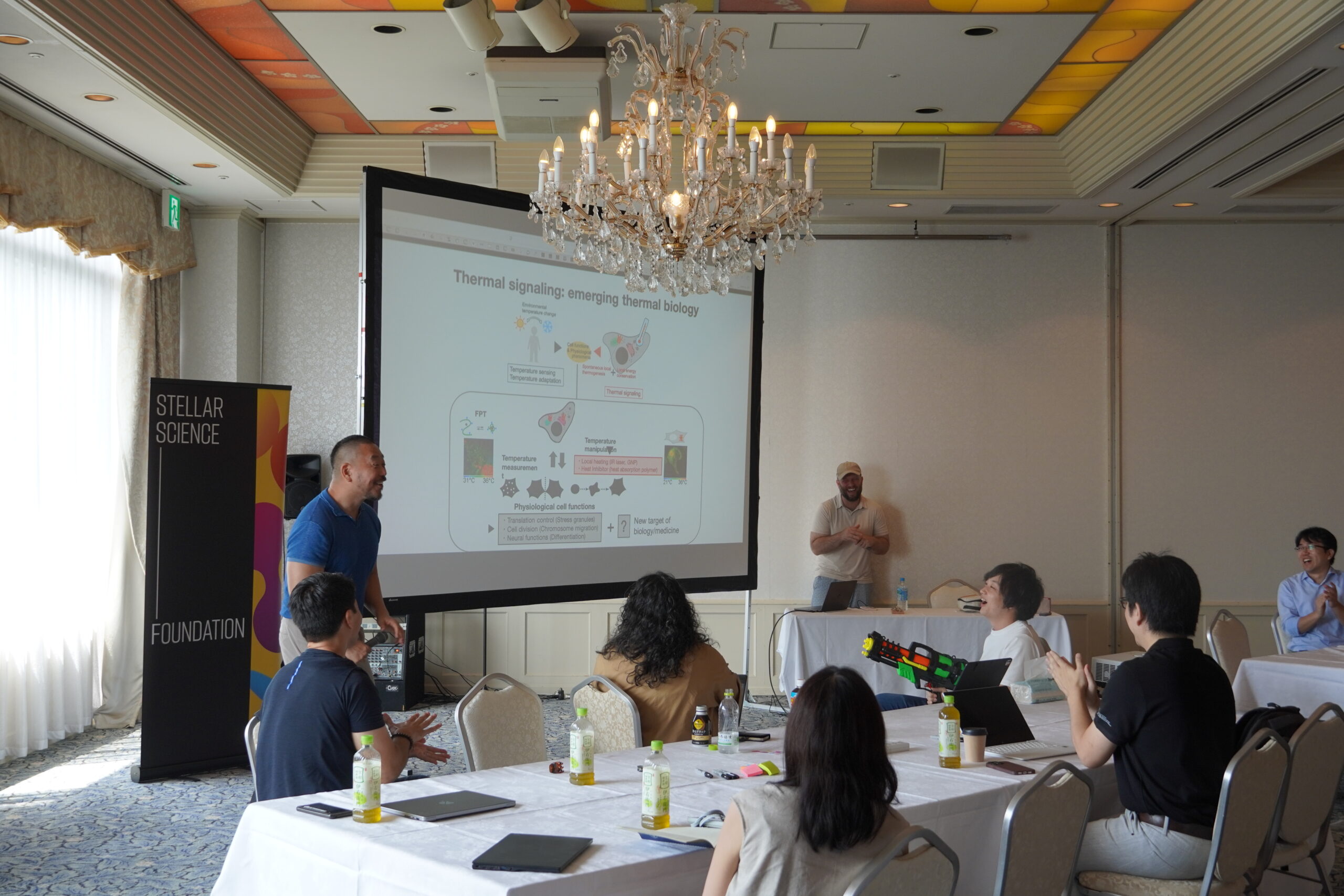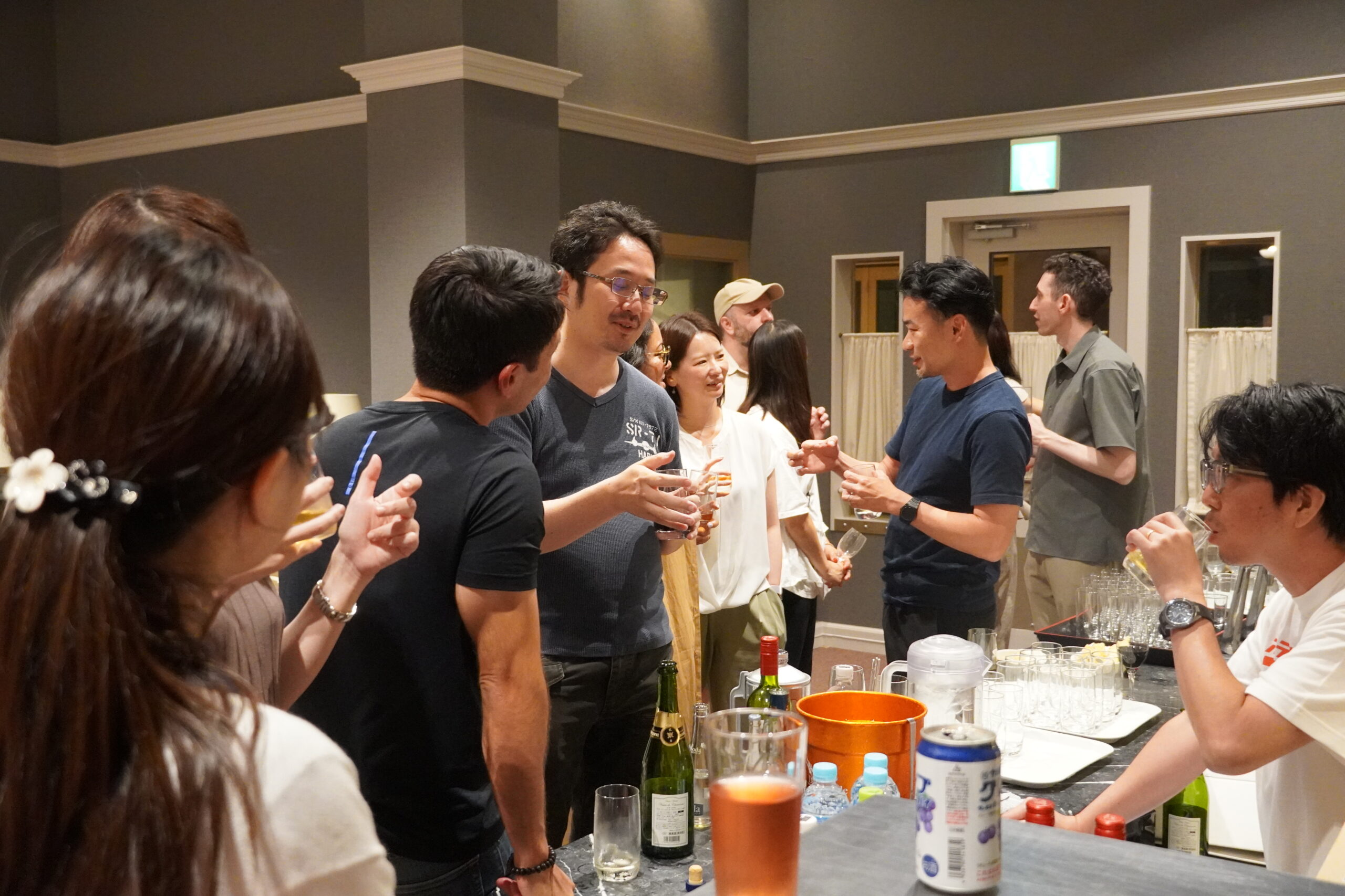 やがて会は二次会へと移り、場所を変えてさらに自由な交流が続きます。二次会では、新しく加わったインベンターの歓迎会も行われました。フォーマルなセッションでは聞けなかった研究の裏話から、趣味の話まで、笑いを交えたカジュアルなやりとりが次々と生まれます。リトリートが「研究のための集まり」であると同時に、「人と人がつながる場」であることを、改めて実感できる夜となりました。