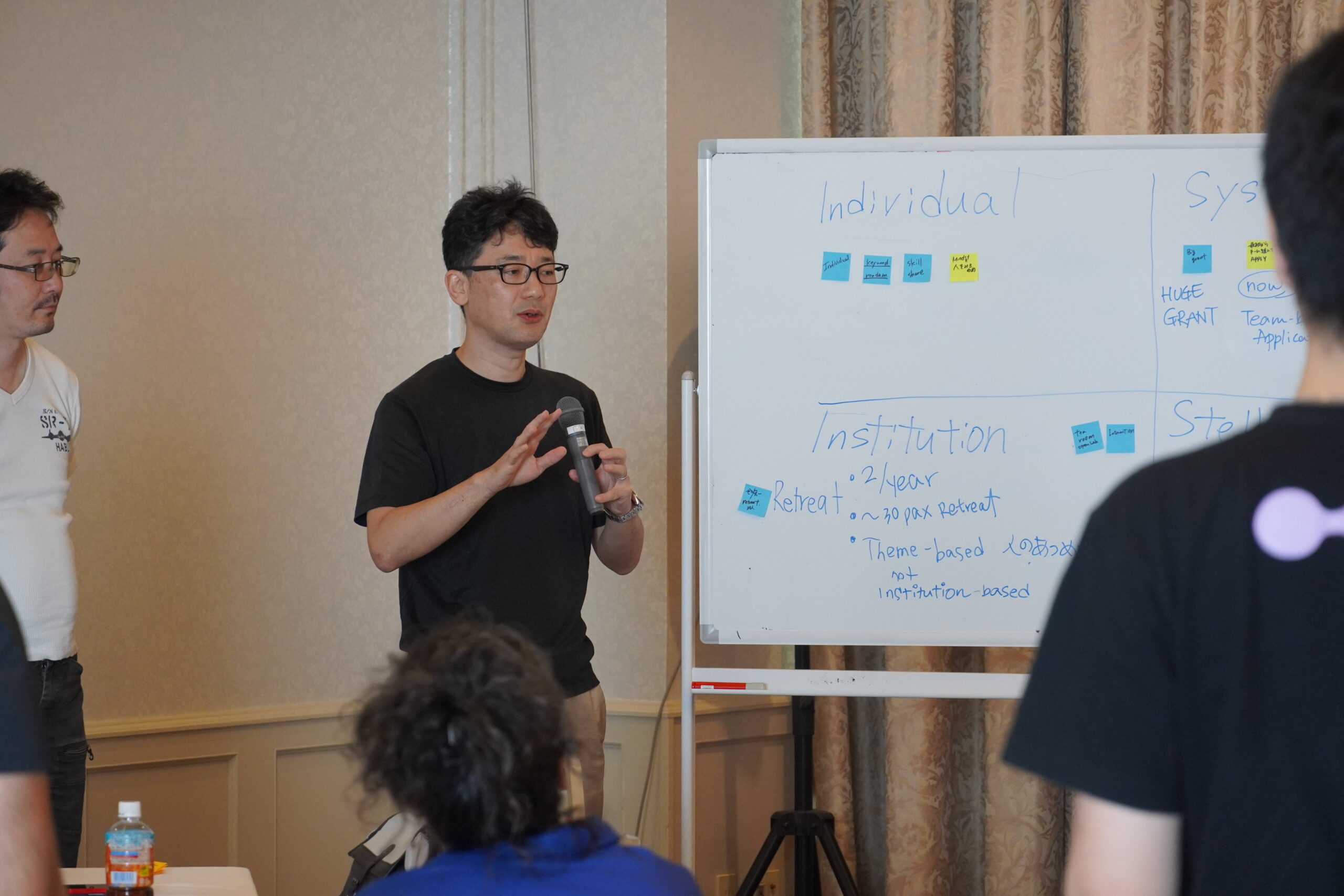 会議や学会では同分野の研究者と深く話すことはできても、異分野の人との出会いは少ない。そこで「テーマ型リトリート」や「異分野を横断する定期交流会」をつくることが、新しいアイデアやパートナーシップを生み出す鍵になるのではないかと提案されました。